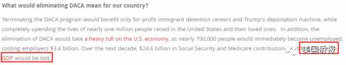 如果DACA受益人被遣返,“我们国家的GDP将损失4630亿美元,在社会保障和医疗保险税贡献方面则将损失246亿美元,”该联名信继续写道,信中还将近80万DACA的受益人称为“梦想家”,因为这些移民对“我们的公司的未来和美国经济都是至关重要的”。