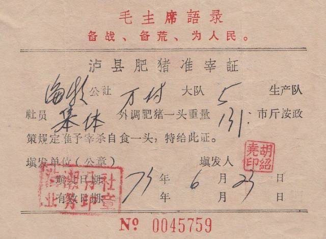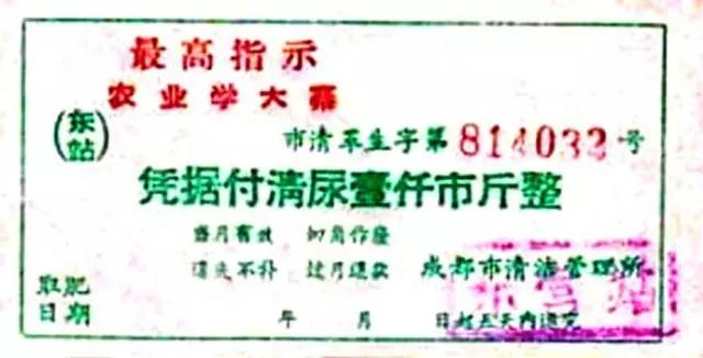 价值五担的粪票(在那时候,粪便是农作物极其重要的肥料)