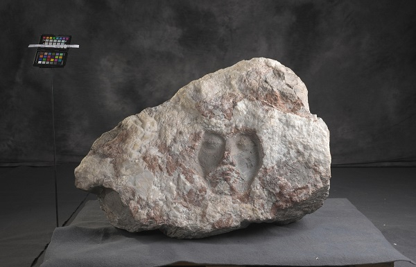 贺中令创作的《白山魂》(中国美术馆馆藏)。“绕白山十数日,跋涉数百里”,只为寻访英雄的灵魂,白山的儿子——杨靖宇。烈士的面孔嵌在白石里面,沉静安详。