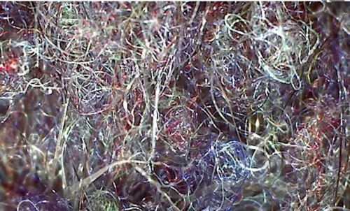 ▲洗衣机排出废水里衣物纤维放大后的图片,有研究发现,洗一次羊毛衫能掉25万个纤维。图据《卫报》