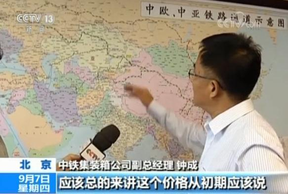 中铁集装箱公司副总经理 钟成:从初期比现在价格下降了30%。运行的时间从初期的15天到现在可能最快10天就可能抵达欧洲。