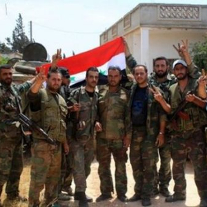 资料图片:叙政府军士兵庆祝胜利资料图。(图片来源于网络)