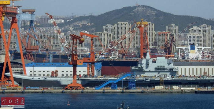 近日,据外媒报道,中国首艘国产航母(代号001A型)或将于4月23日的“海军节”当天下水,那么国产航母的战力如何?与外国海军航母相比又怎样?本图集将以对比的方式来解析。图为4月18日网上流传的001A型航母的最新照片,可见舰体舾装已完成,并换上了海军灰涂装。