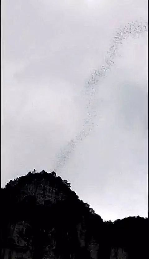 9月5日18时许,网友在黔东南州凯里市龙场镇至黄平县的小江口大峡谷中拍到一幕奇观:成千上万只蝙蝠飞出山洞,在山谷上空聚成了一条长达百米的“黑龙”,整个场景持续近20分钟。