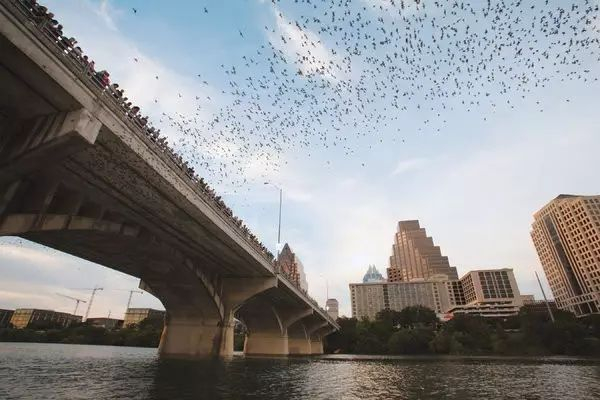 在奥斯汀,午餐时刻,观看150万只蝙蝠自国会大道桥下飘落又重新飞升。
