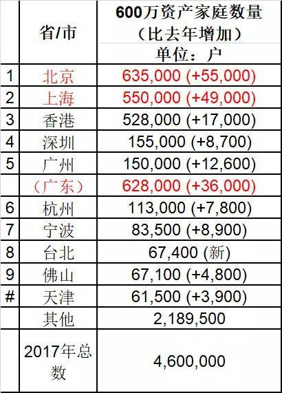 广东第二,600万资产家庭比去年增加3.6万,达到62.8万,增幅6%,其中拥有600万可投资资产的家庭数量有22万;