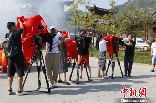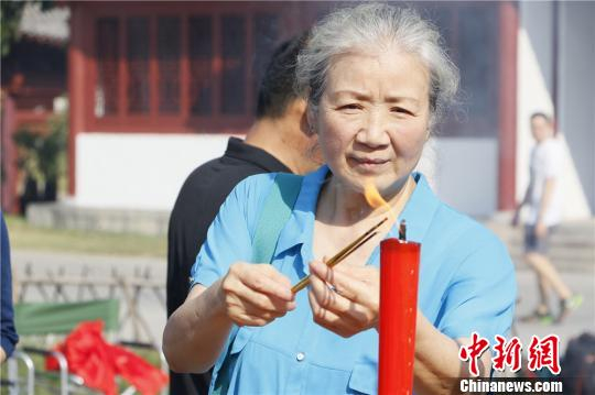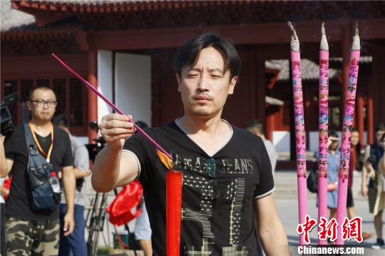 图为:演员曹翠芬正在上香祈福。 张勇 摄