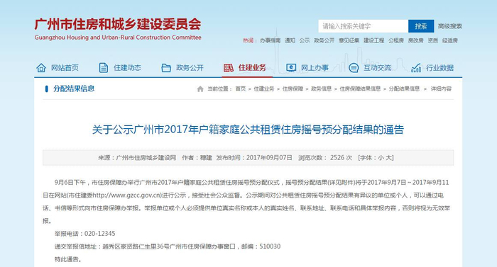 9月7日—11日,广州市住房保障办将通过网站(http://www.gzcc.gov.cn)公示获得预配租资格的家庭名单,同时接受投诉举报。