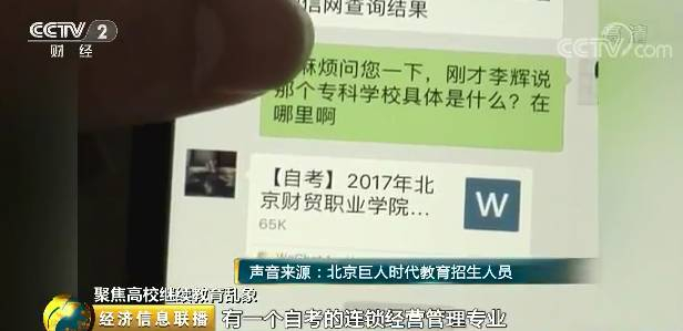 8月30号,记者在某知名软件客户端中又见到了和1月份类似的广告,称“一年修正规名校本科”,记者留下电话后接到了自称北京巨人时代教育的电话。当记者表示想报考北大、清华等名校的本科专业时,对方表示人数已经爆满,并称如果想快速拿到大学学历,可以走一条捷径。而快速取证“捷径”,需要记者支付10800多元的报名费。