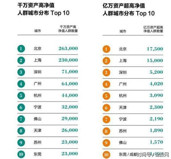 上海每105个人中有1人是千万富豪,深圳每170个人中有1人是千万富豪,杭州每210个人中有1人是千万富豪,广州每220个人中有1人是千万富豪,宁波每250人中就有1个千万富豪,东莞每360个人中有1人是千万富豪……