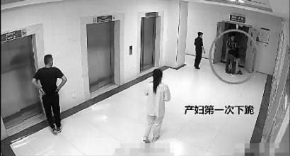 事发医院公布监控录像截图,称马某两次下跪请求家属同意剖腹产。