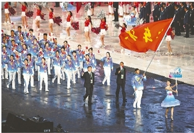 全运会开幕式上火车头体协入场情景。本报记者 许之丰 摄