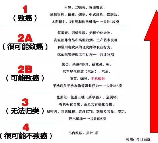 致癌物的分类只是告诉我们致癌物证据等级的高低;