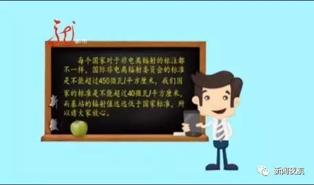 其实,每个国家对于非电离辐射的标注都不一样,国际非电离辐射委员会的标准是不能超过450微瓦/平方厘米,我们国家的标准是不能超过40微瓦/平方厘米,而基站的辐射值远远低于国家标准。