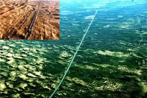 沙漠中的绿色从一点点变成一条线,从一条线变成一大片,荒漠化面积逐年递减,荒漠生态功能不断增强。