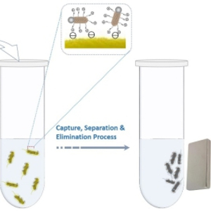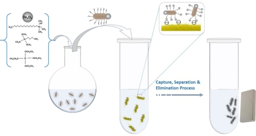 健康医疗、化妆品和食品的细菌感染和细菌污染问题得到了越来越多的关注。随着检测手段的发展,消毒技术得到长足进步,但病原性细菌的精确测量和有效清除仍是当今科学家面临的挑战。为了克服这些障碍,科学家致力于设计和改善多功能平台来获得快速的细菌捕获效率并同时进行细菌检测和清除,多功能平台可能会极大促进临床诊断、环境检测和食品安全领域的发展。这些众多的尝试中,磁性纳米粒子凭借着自身优异的性质(可用于快速的细菌捕获、表面易于功能化进行细菌的靶向捕获以及优异的生物相容性等)被广泛用于检测和杀死细菌。然而,裸磁性纳米颗粒由于杀菌药物负载容量的限制以及较低的细菌捕获效率限制了其进一步的应用。因此,开发基于磁性的具有杰出细菌捕获、分离和清除性能于一体的纳米平台是亟须解决的难题。
