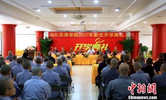 中新网哈尔滨9月7日电(记者王舒 史轶夫)哈尔滨佛学院第二届学僧入学仪式7日在中国东北享有极高威望的哈尔滨极乐寺内举行,来自8省的22位学僧将在此开启两年的学习。两年前,这所中国北方的汉语系全日制中等佛教院校刚揭牌开学时,因其缩写与美国名校“哈佛”谐音相同,迅速在中国网络空间中引起极大关注。