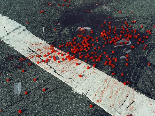 © Christopher Anderson, Cherries Spilled on Crosswalk, New York City, 2014. Courtesy of Magnum Photos