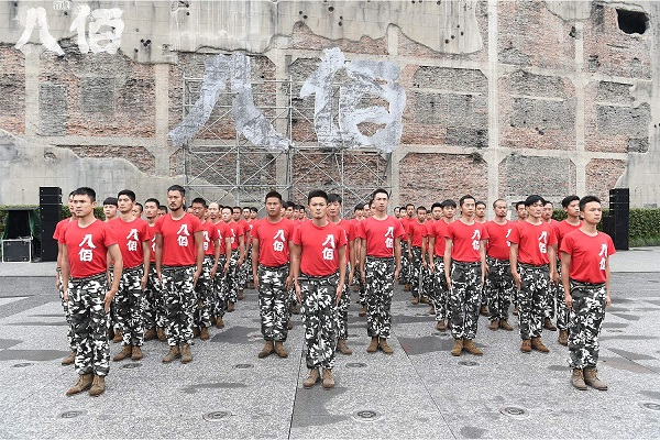 负责军训的教官臧雷是曾经参加对越自卫反击战的营长,据他介绍,演员们在40多度的高温下,穿着呢子的服装训练,“出的汗是要论斤的。很多人身体瘦了,肌肉结实了,皮肤黑了,但是他们更像一个战士。与其说他们是演员,我更感觉他们是八百壮士精神的传人,他们深刻理解导演真实再现我们的历史的思想,训练当中非常辛苦,这是我见过电影演员接受军事训练最刻苦、最自主的一次,所以我非常钦佩他们。”