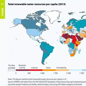 全球人均可再生水资源(2013年)。 来源:UNESCO
