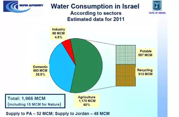 以色列各行业用水比例分布情况。 来源:OdedFixler