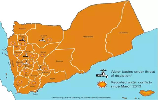 在也门,由于降雨量小,加之该国大面积种植茶叶而导致水资源严重短缺。据世行资助的萨那地下水管理项目负责人称,目前也门钻井采到的地下水已是8000年前的“化石水”(长期被密封在蓄水层中的地下水)了。
