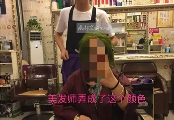 因美发师染发失败,大姐邓女士在7小时内染发4次,头皮也被染成了绿色,导致原本一头美丽的秀发被剃成了光头……