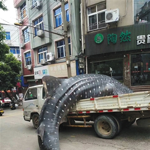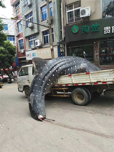 9月4日下午,新浪微博网友“BlueGood”发布图片显示,一辆货车路过一处街道,车上装载一条疑似鲸鱼的大型水生动物。图片显示,该水生动物因体型过大,尾部拖行在地上并已破损,留下直线形血迹。该货车在人流拥挤的街道上穿行,引来市民围观拍照。