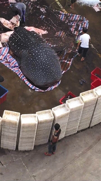 ●2015年8月4日,一条鲸鲨在广东省阳江市闸坡洲仔码头岸边被活体切割分段,视频在网络流传后引发关注。事后,广东省渔政总队闸坡大队介入调查。