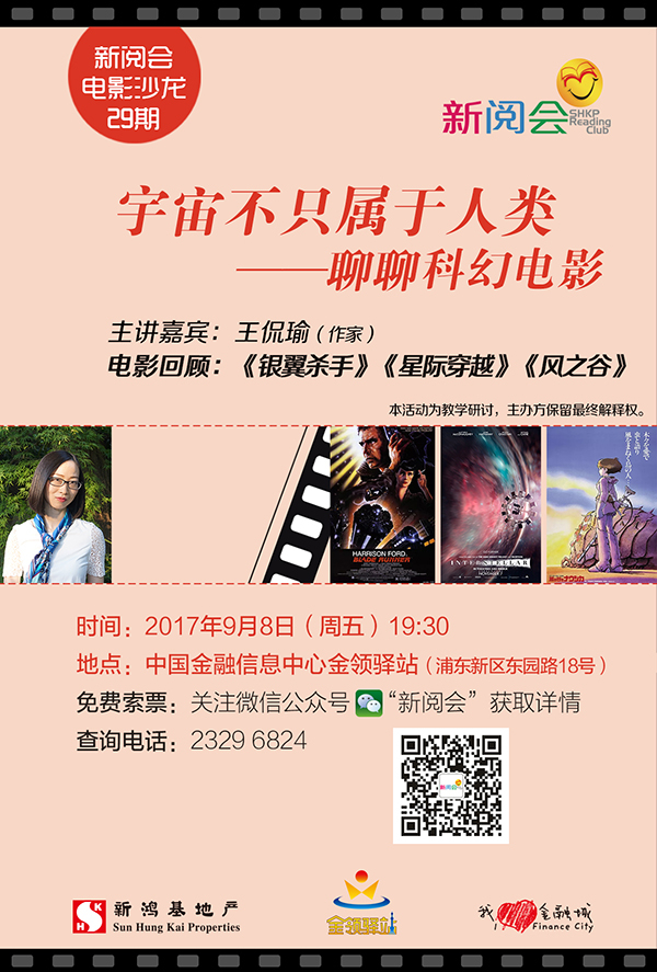 刚刚结束的2017上海国际文学周,科幻成为了国内外作家和书迷们一起讨论的主题。不得不说,近年来科幻作品吸引了越来越多的书迷,包括影迷。本期电影沙龙活动,我们就将邀请作家王侃瑜来和大家一起聊聊科幻电影,带你一起回顾科幻经典《银翼杀手》、《星际穿越》和《风之谷》。