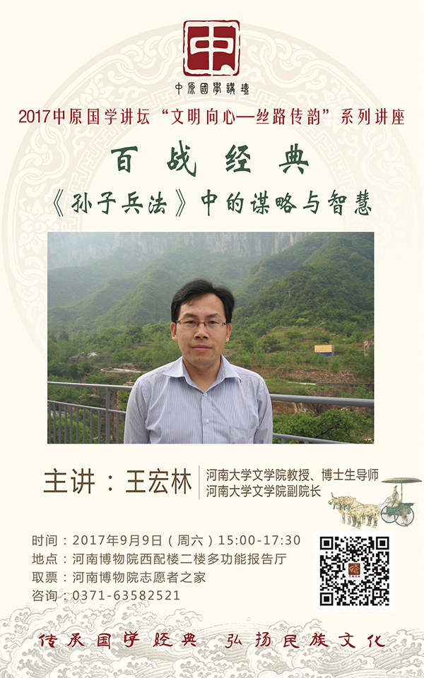 作为中国古典军事文化遗产中的璀璨瑰宝、中国优秀传统文化的重要组成部分,《孙子兵法》为世人熟知,但是它的作者孙武却鲜为人知,有人甚至把孙武和孙膑混为一谈,孙武作为《孙子兵法》的作者,未见以前有他的战争经历的记载,为什么一出手就写出兵法十三篇,成为千古兵家的圣典?9月9日下午,河南大学文学院教授、博士生导师王宏林和您一起品读《孙子兵法》,看奇人奇书的独特魅力。
