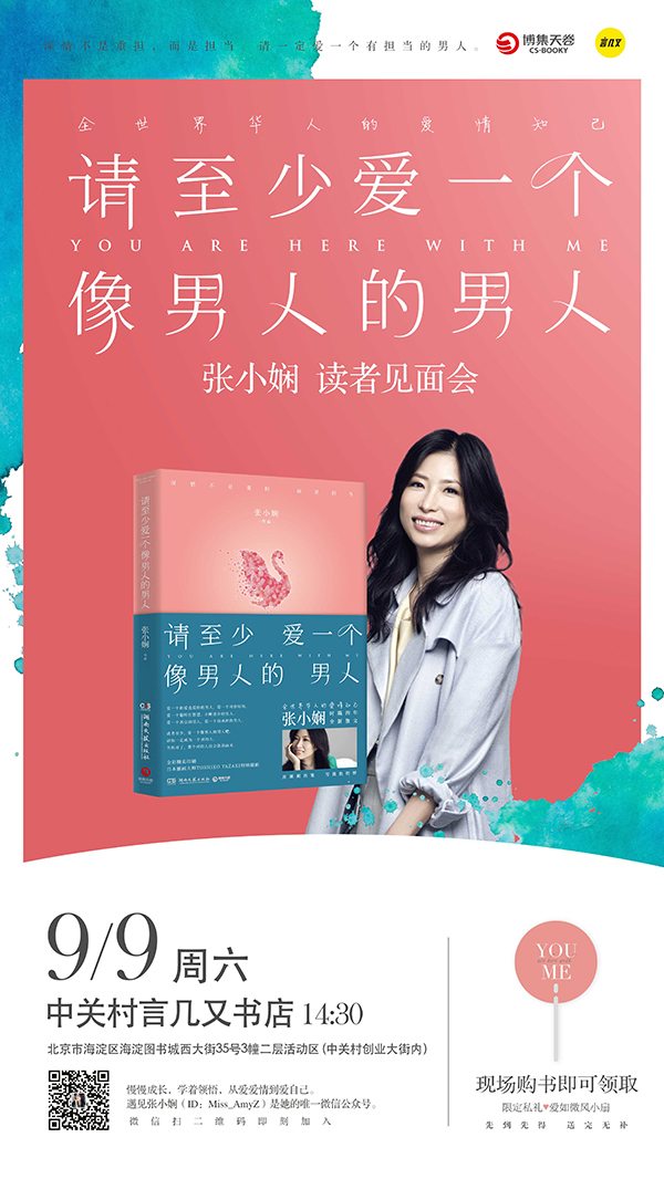 张小娴的作品被很多女生视为“爱情圣经”,但她在谈及爱情时却认为自己从来就不是爱情导师,而爱情唯一的导师即是爱情本身。经历过、感受过、体验过、思考过,才会最终明白最适合自己的人是什么样的,最需要追求的人生是什么样的,当这一切都明了之际,对爱情的理解也就拨云见日了。9月9日,张小娴在言几又与你见面。