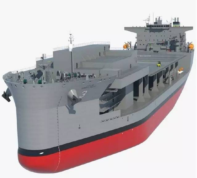 此外,它还在舰艏加装了模块化的人员居住和作战指挥舱室,可供250名人员生活工作。舰上生活保障、航空指挥、物资仓储、油料输送等设施一应俱全。