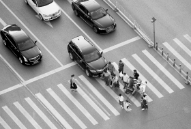 9月7日,长沙湘府路瓦窑路口,车辆过斑马线时没有避让行人。图/记者华剑