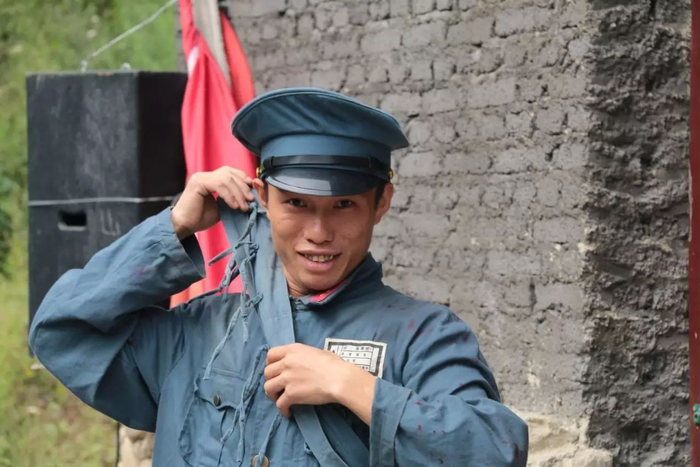 上午10时,在签到、晨会过后,杨思瑜开始换装。演出中,他扮演当年带红军走偏僻小道攻打小尖山的老猎人。他的儿子则扮演一营在炸碉堡中牺牲的红军战士,儿媳扮演迎接红军的群众。