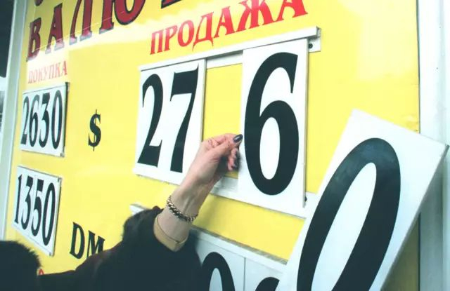 1999年3月,俄罗斯,换汇点前的汇率牌。