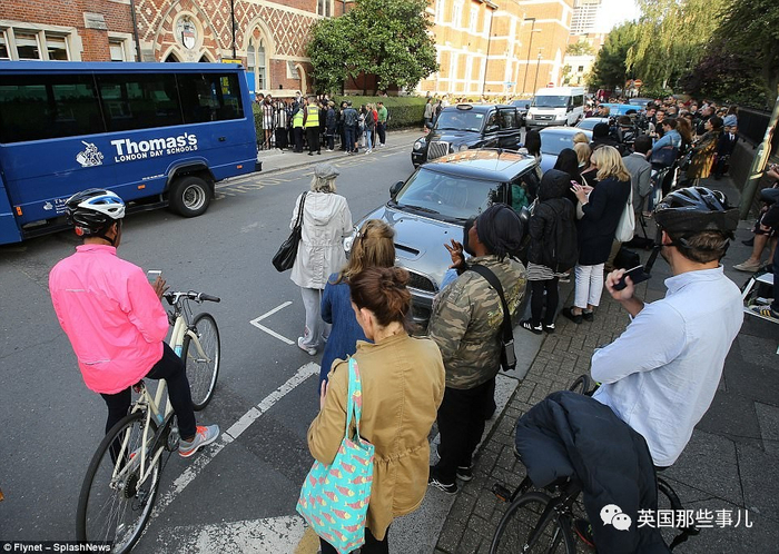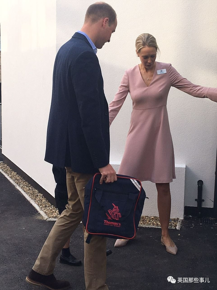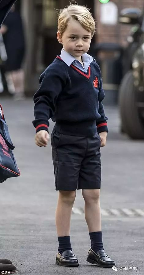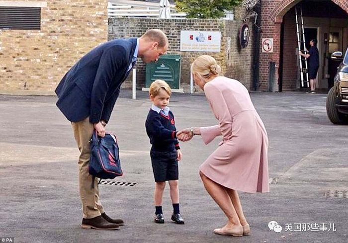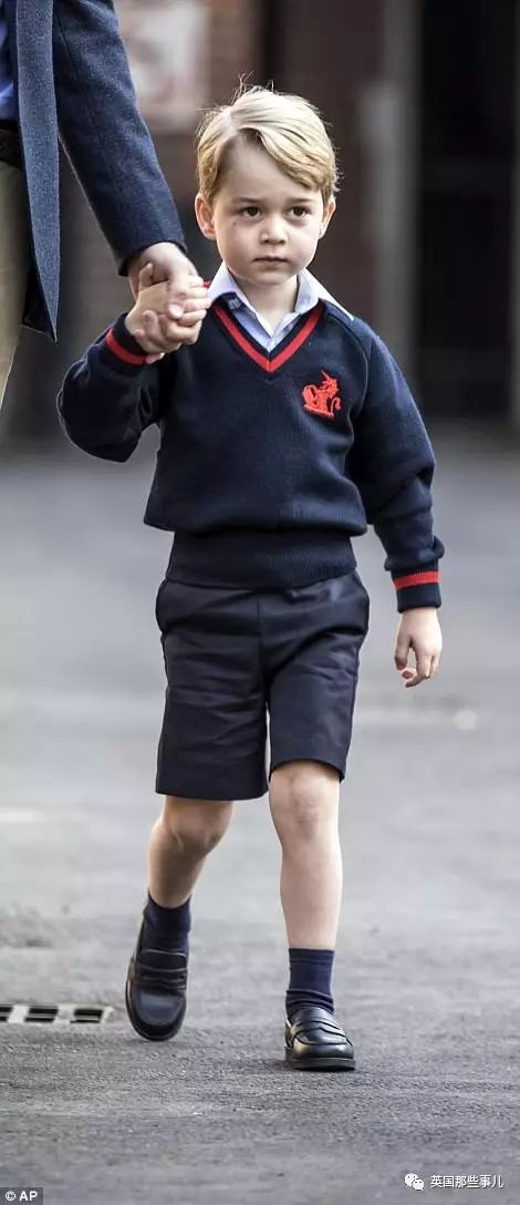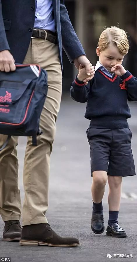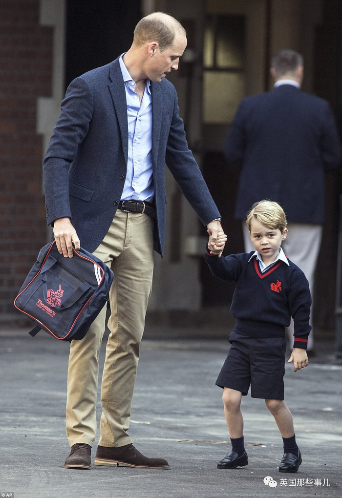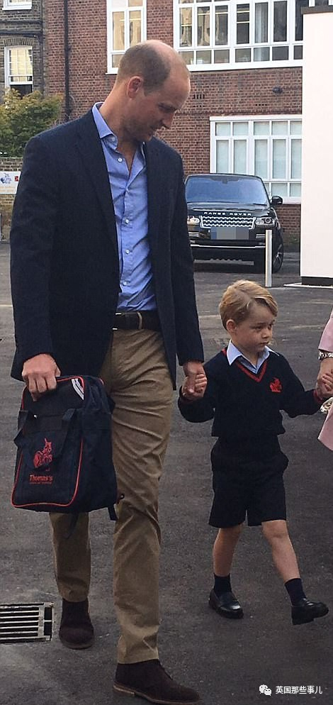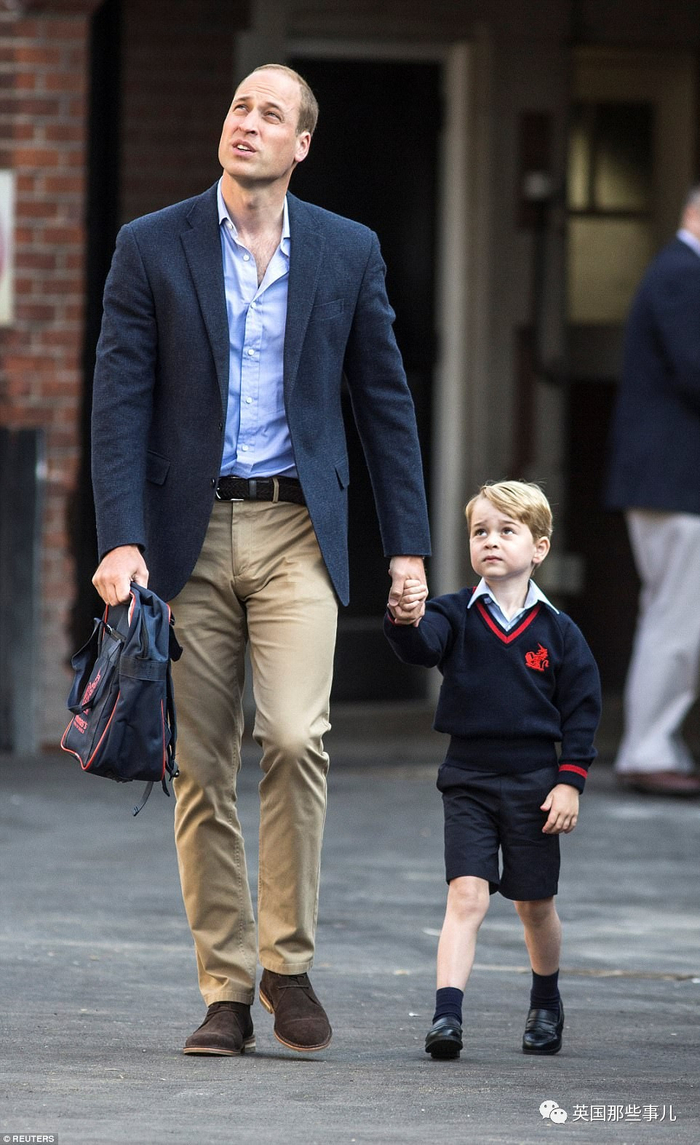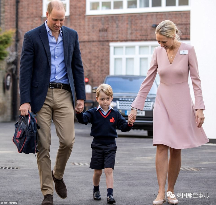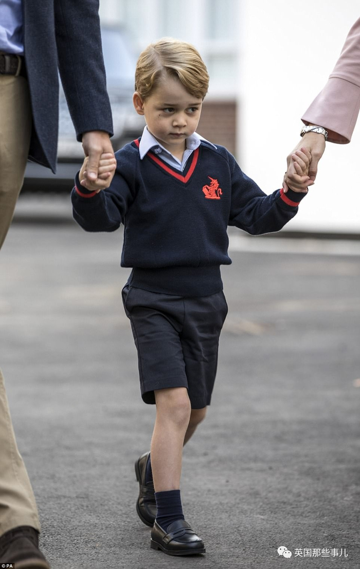 就这样和老爹威廉王子,一左一右,牵着乔治去报道...