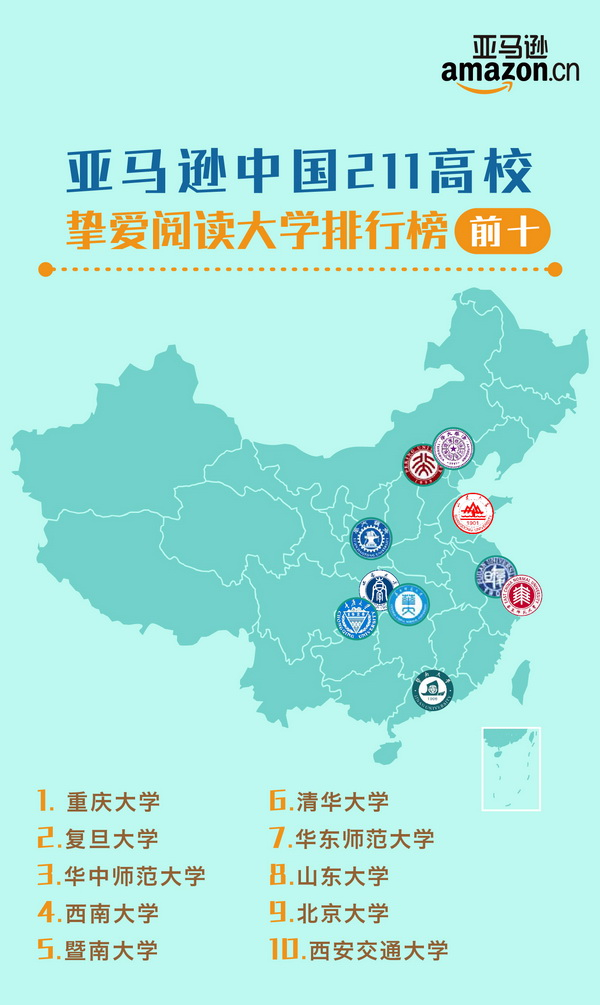 亚马逊中国211高校挚爱阅读大学排行榜前十