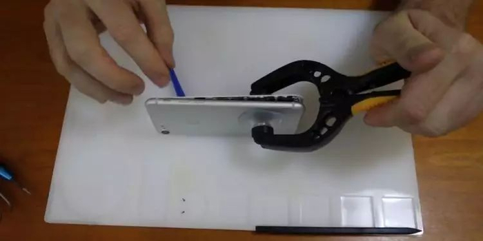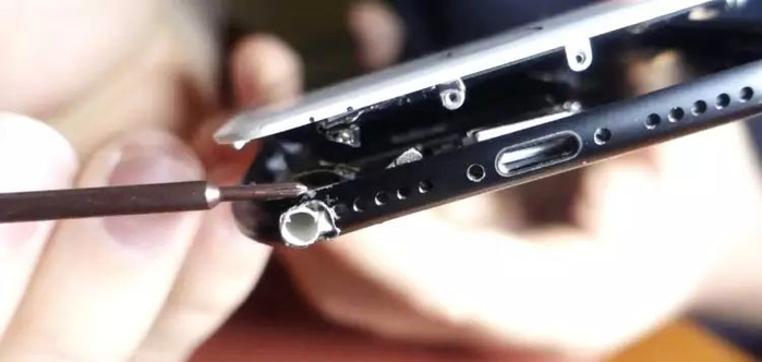 用取屏器打开手机,发现里面应该有足够的空间再塞下一个耳机接口。