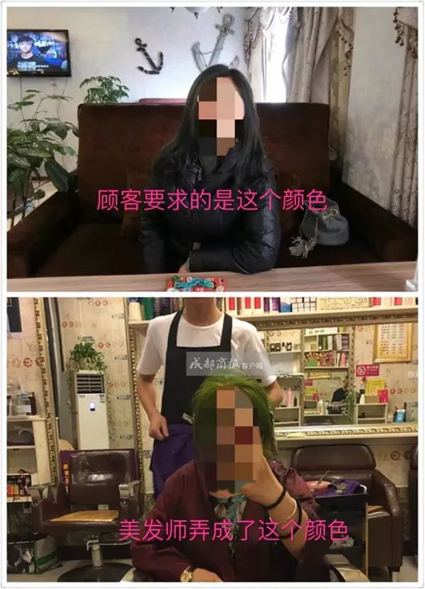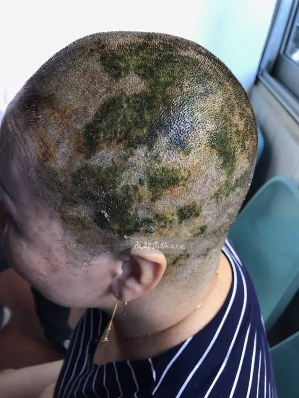 因美发师染发失败,大姐邓女士在7小时内染发4次,头皮也被染成了绿色,导致原本一头美丽的秀发被剃成了光头……