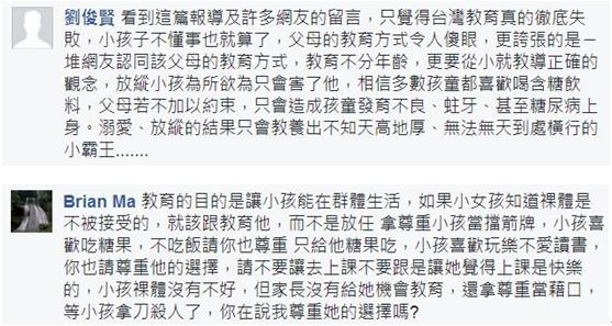 女童母亲表示,女儿觉得太热才会脱光,并强调“尊重孩子的选择”,后来女童的父亲也与关心的民众起口角,并呛出“尊重,才是教育的真谛!”