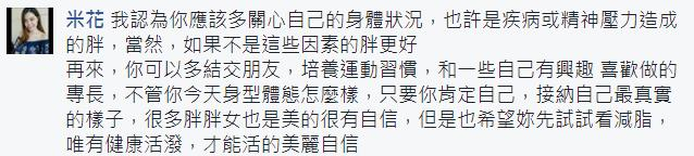 但是,也有网友鼓励她,不管为了自己的健康也好,为了男友也好,先把体重减下来。