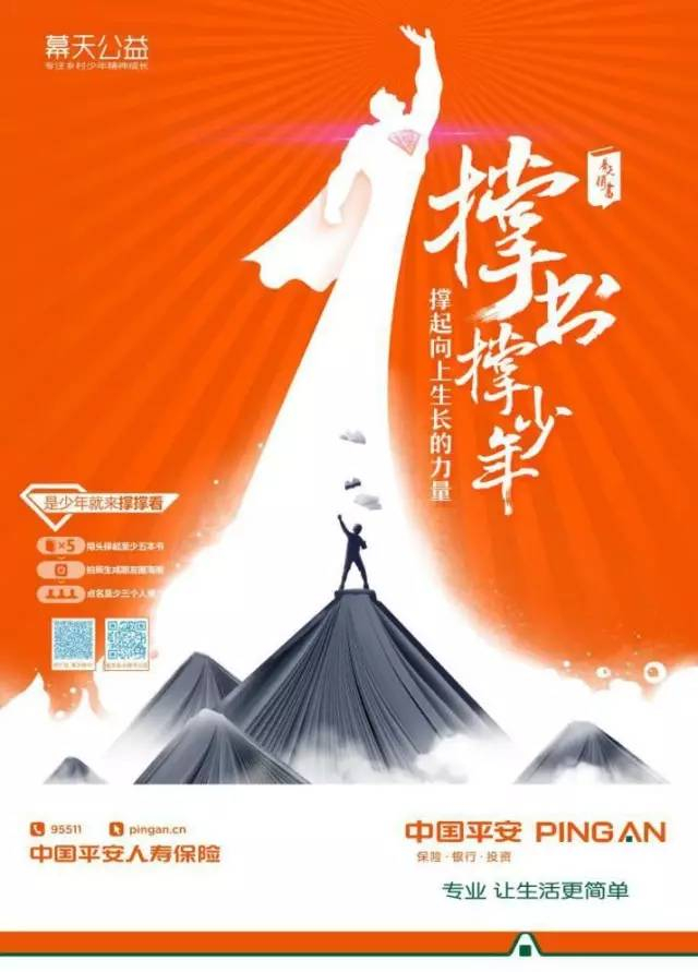 抱着这样的信仰和梦想,在“撑书撑少年”公益行动中,平安人寿联合幕天公益发动上百万代理人、上亿的客户及公众,共同汇聚力量来做这件暖心的好事——为乡村少年筹集善款,送出更多课外好书,让少年们以阅读触摸世界,获得向上生长的力量。