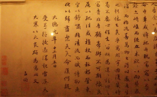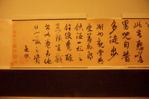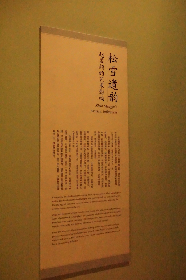 走过过道,左、右两边是两个方形展区。主要展出的仍为赵孟頫的书法与绘画。