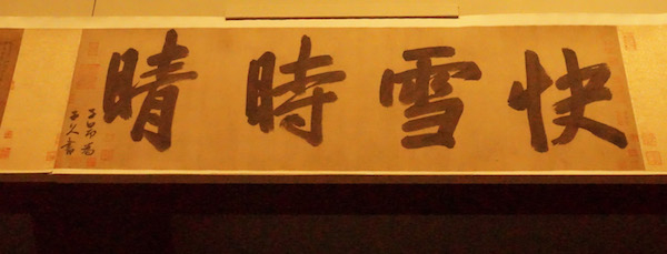 这个是赵孟頫存世墨迹中最大的字。出自赵孟頫、黄公望、徐贲合作的《快雪时晴书画合璧卷》。