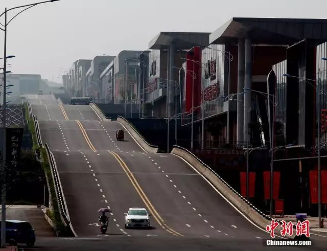 因为旁边的商业楼共有四层,为了方便每一层楼的商家能够将车开到门口,所以在当初规划时就设计了这段波浪形公路。