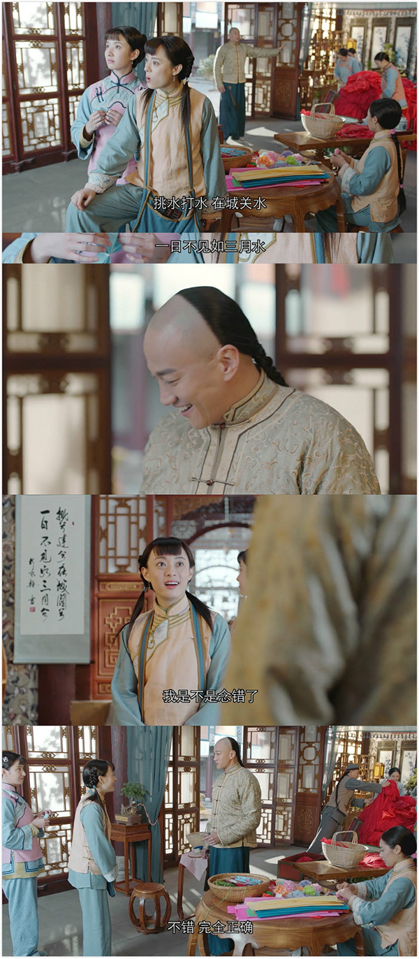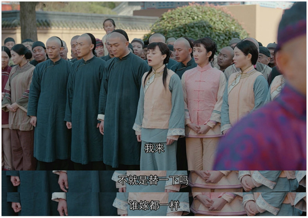 周莹跟婆婆学规矩,扭扭捏捏作出少奶奶的做派。