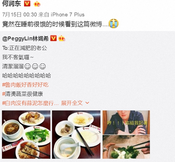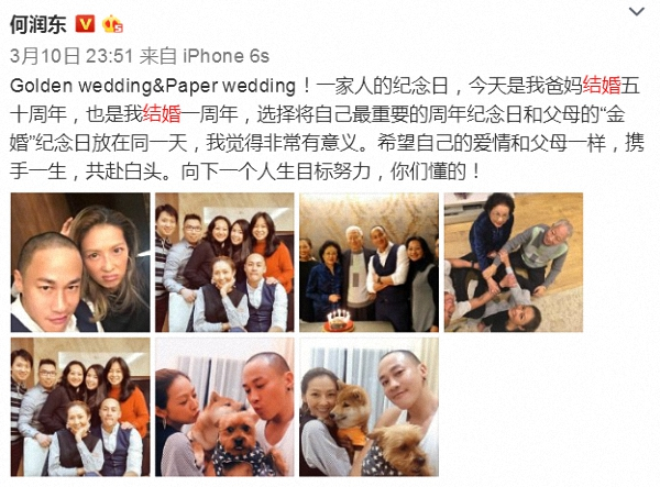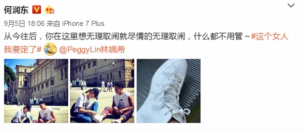 何润东与妻子Peggy相爱十年,终于在去年公开婚讯,从那以后微博就成为他的大型屠狗场↓