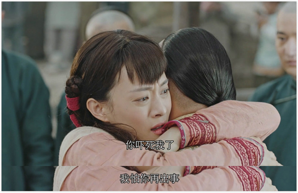 粥棚倒塌,吴聘奋不顾身地保护周莹,周莹后怕地哭。