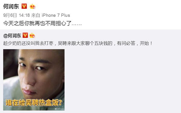 不过吴聘的盒饭并不能阻止新晋网红何润东……